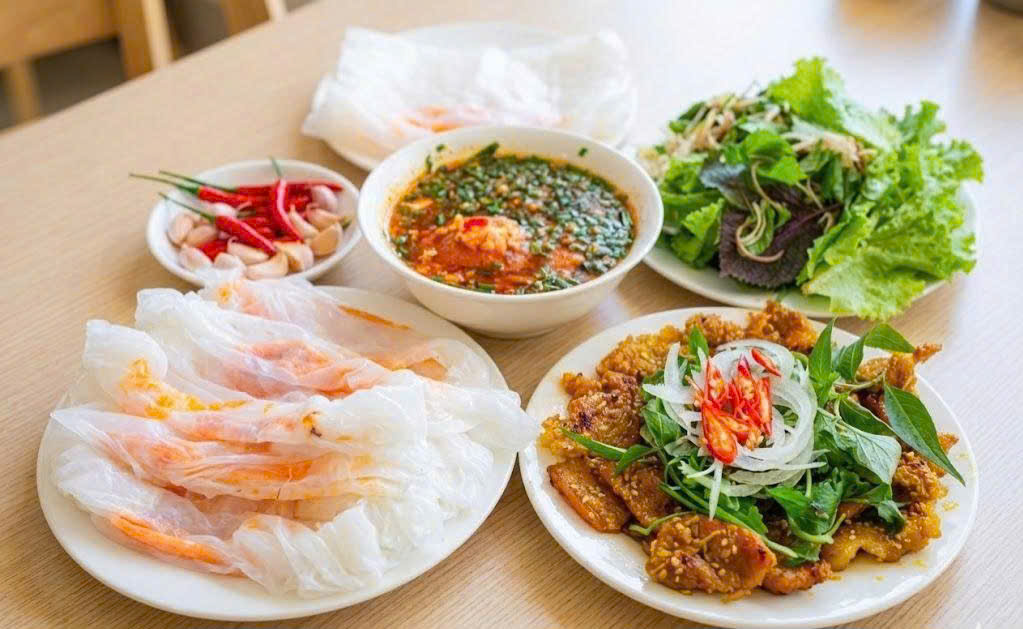 Món ăn đặc sắc: Bánh ướt thịt nướng (khoảng 35k - 50k một suất đầy đặn).
