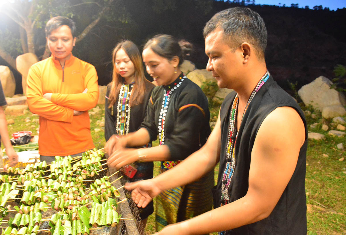 For those who love adventure, the Pa Thien – Voi Mep trekking trail offers a truly memorable journey. Starting from Nguon Rao – Pin village, you follow narrow forest paths, climb steep slopes, and cross mountain streams, until you reach a breathtaking view where clouds drift below your feet. The route stretches 8–12 kilometers, taking 6–8 hours on foot. It is best suited for groups of 5–10 people and should ideally be accompanied by a local guide. At night, you can camp, gather around a fire, savor bamboo-cooked rice and grilled chicken, and listen to the Van Kieu people share their timeless forest tales.