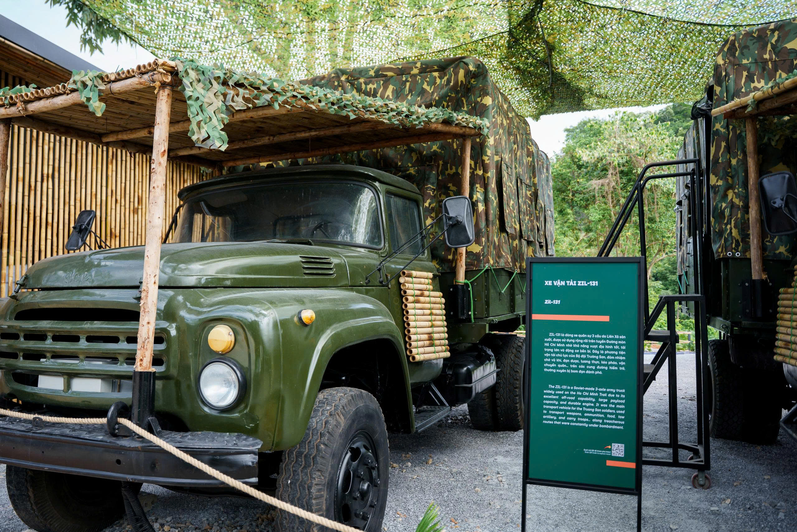 Ngồi trên mô hình xe vận tải Zil-130 – biểu tượng của đường Trường Sơn – du khách được “xuyên không” trở về những năm tháng lửa đạn. Công nghệ VR360 9D mang lại cảm giác như thật: tiếng bom rung trời, khói súng nồng cay, mùi thuốc súng, hơi nóng và cả sự rung lắc của con đường chiến tranh. Đó là phút giây “sống lại” cùng người lính Trường Sơn.